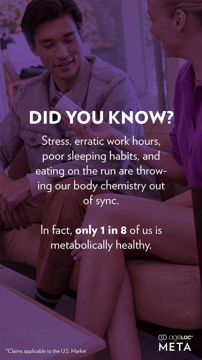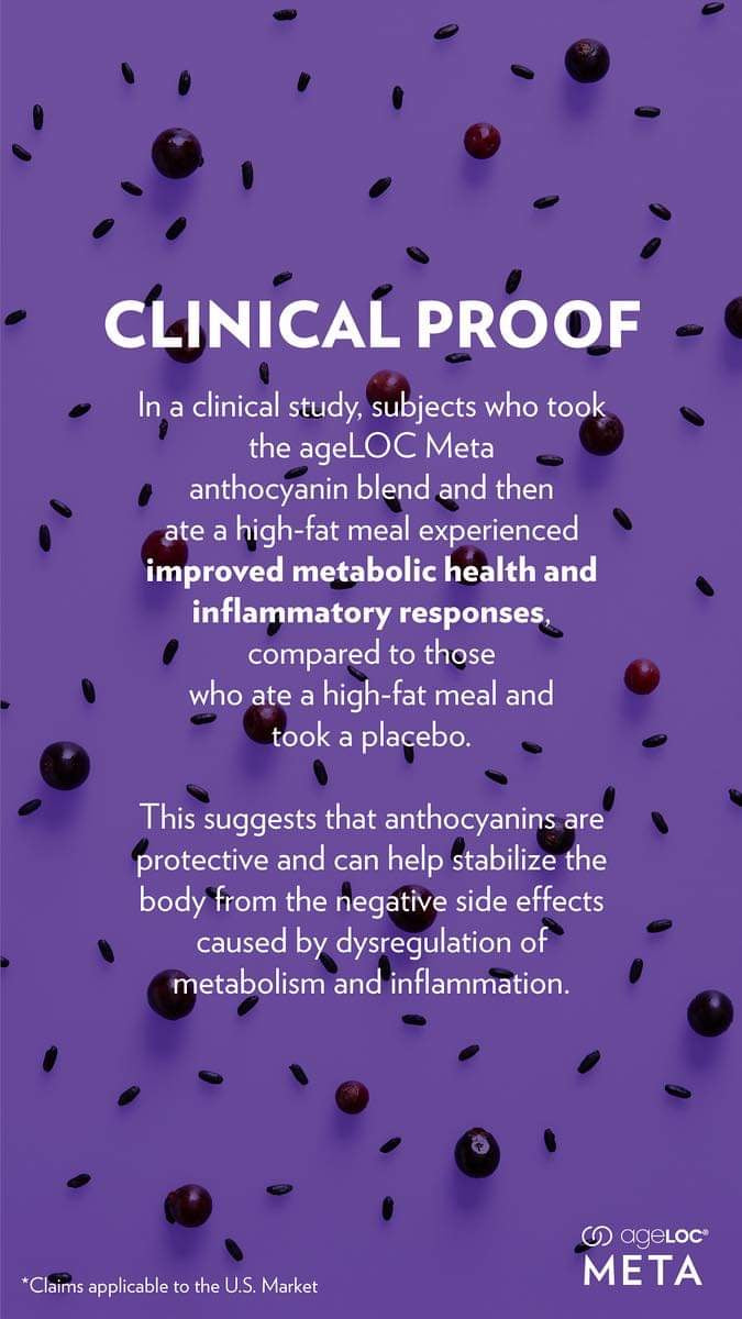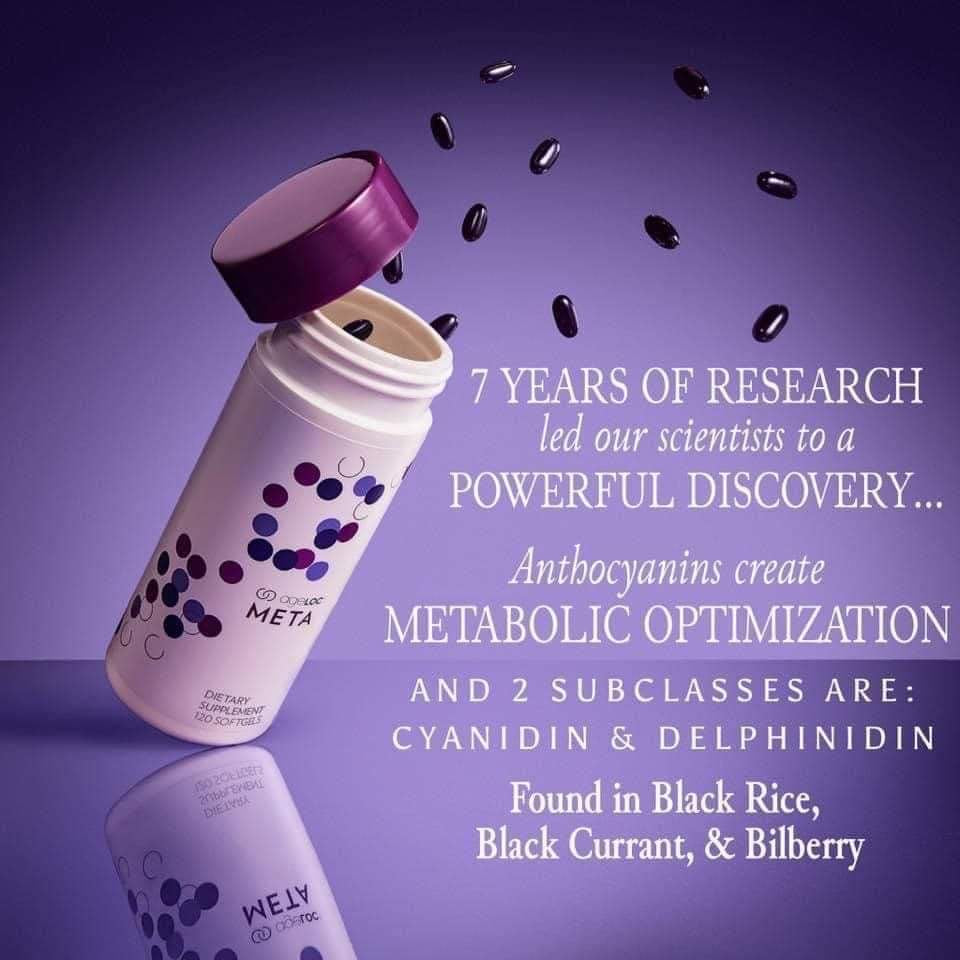 ageLOC Meta is here to help with a daily dose of unrivaled scientific support. Backed by seven years of groundbreaking, exclusive-to-Nu Skin research, it’s powered by anthocyanins— natural health-beneficial compounds found in the deepest purple berries and black rice. This formula features our very own anthocyanin blend, shown to help create a shift toward a healthier mode.** ageLOC Meta is perfect for today’s hectic world because it helps counteract the effects of your modern lifestyle when combined with healthy eating, regular exercise, and better sleep.**